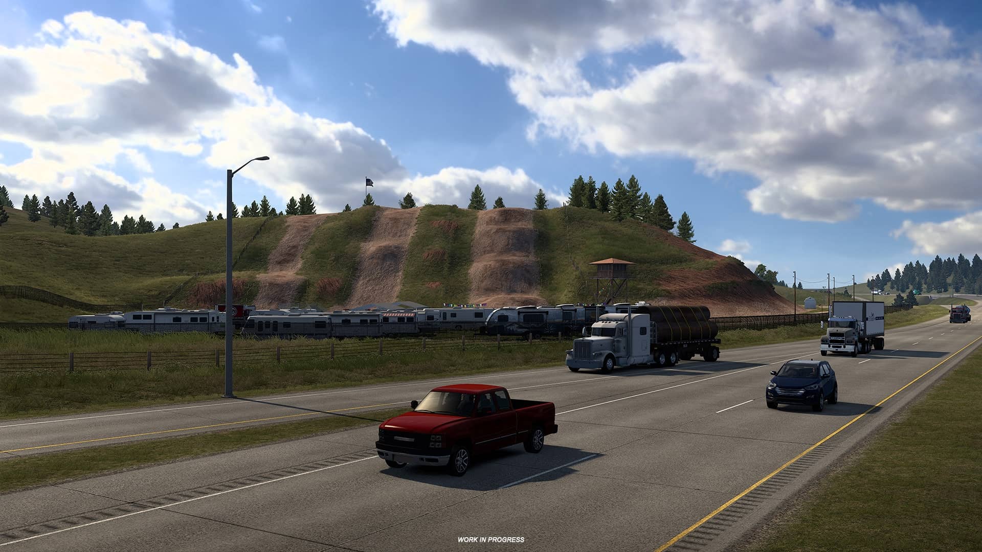 Mit dieser Vorschau gibt SCS Software einen weiteren Einblick in die laufende Arbeit an der neuen Kartenerweiterung. Das Projekt befindet sich weiterhin in Entwicklung, soll aber den landschaftlichen und kulturellen Charakter des „Mount Rushmore State“ möglichst detailgetreu wiedergeben.