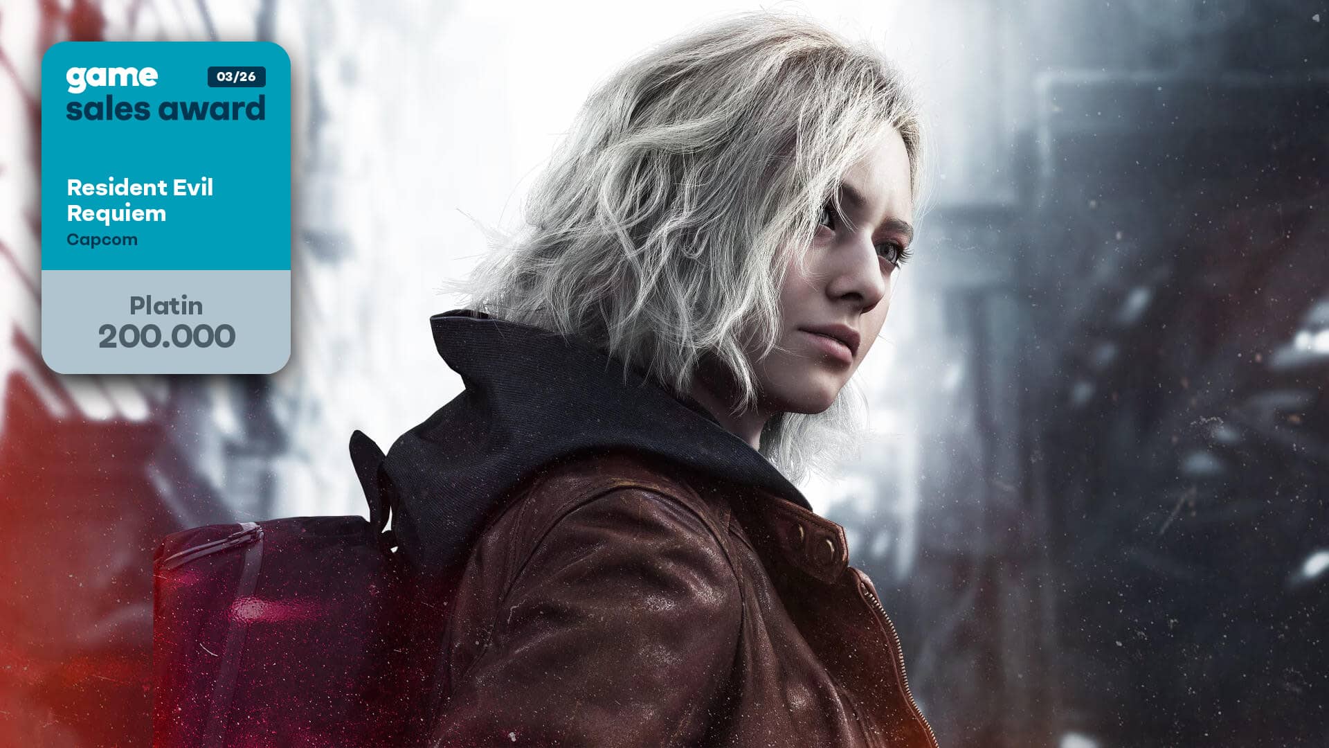 Der game – Verband der deutschen Games-Branche hat die Sales Awards für März 2026 vergeben. Resident Evil Requiem wurde dabei mit dem Platin-Award ausgezeichnet. Das Spiel hat in Deutschland die Marke von 200.000 verkauften Einheiten überschritten.