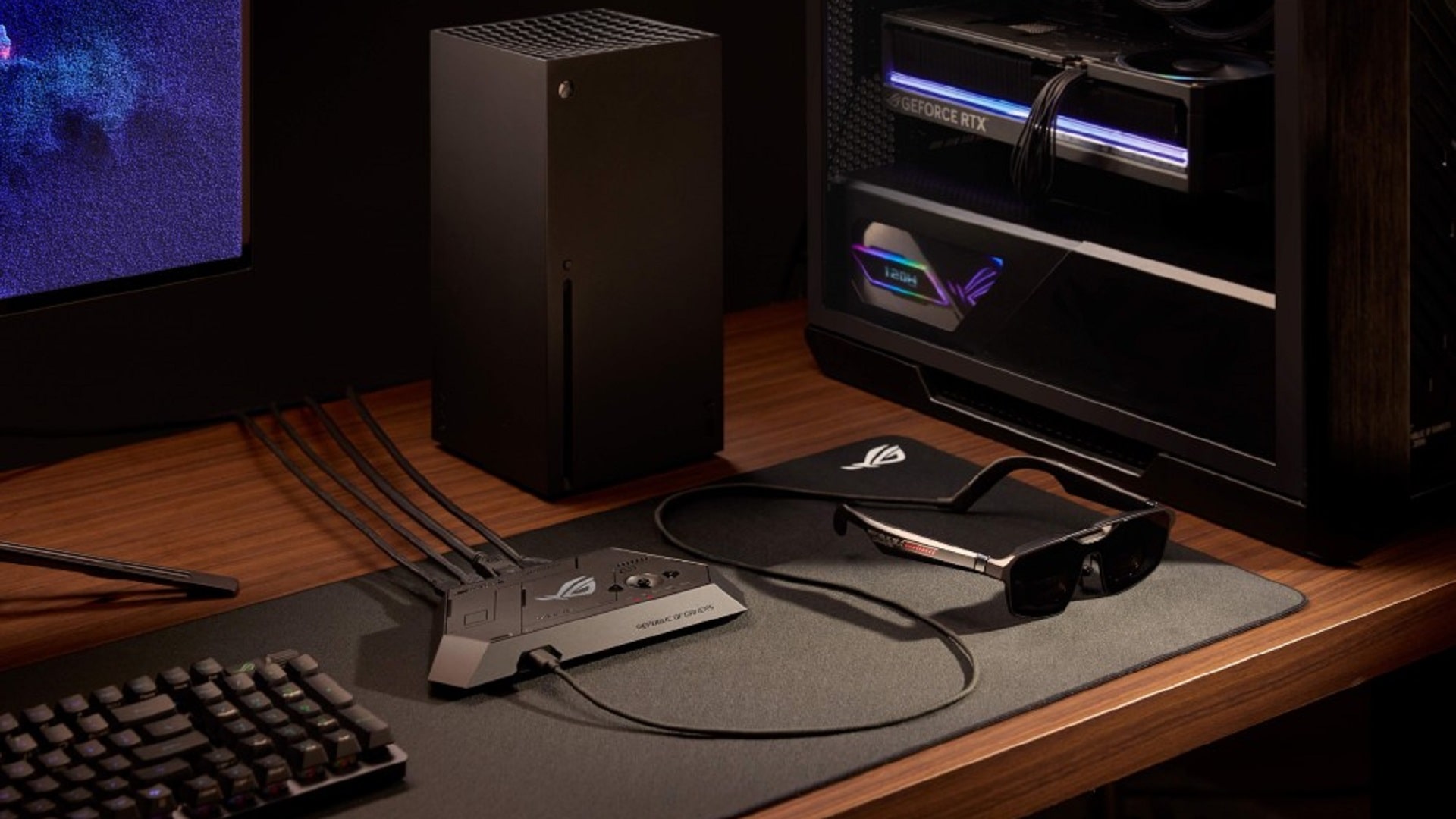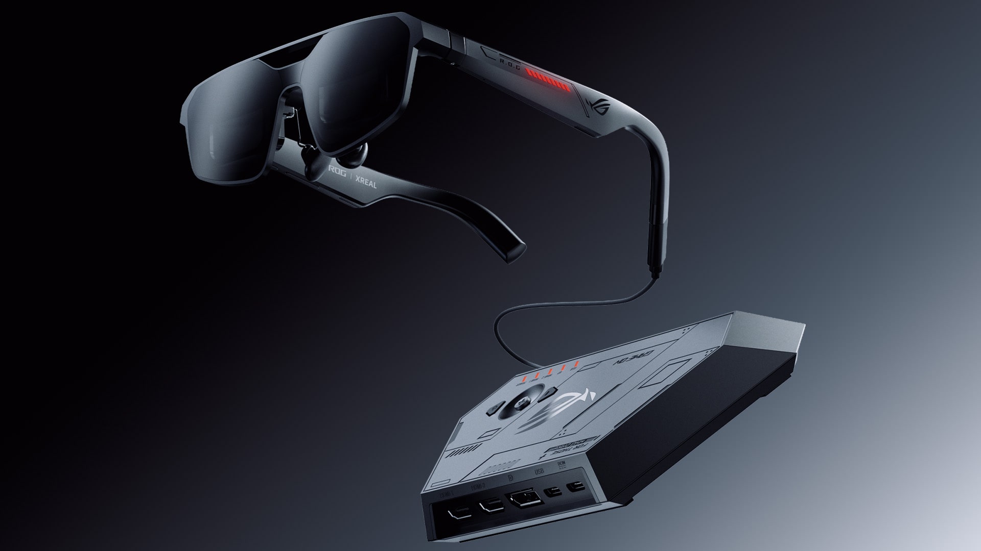 Ein zentrales Element ist das sogenannte ROG Control Dock. Darüber lassen sich PCs und Konsolen per DisplayPort 1.4 oder HDMI 2.0 anschließen. Alternativ kann die Brille direkt per USB-C mit dem ROG Ally verbunden werden. In diesem Fall ist laut Hersteller keine zusätzliche Einrichtung nötig.