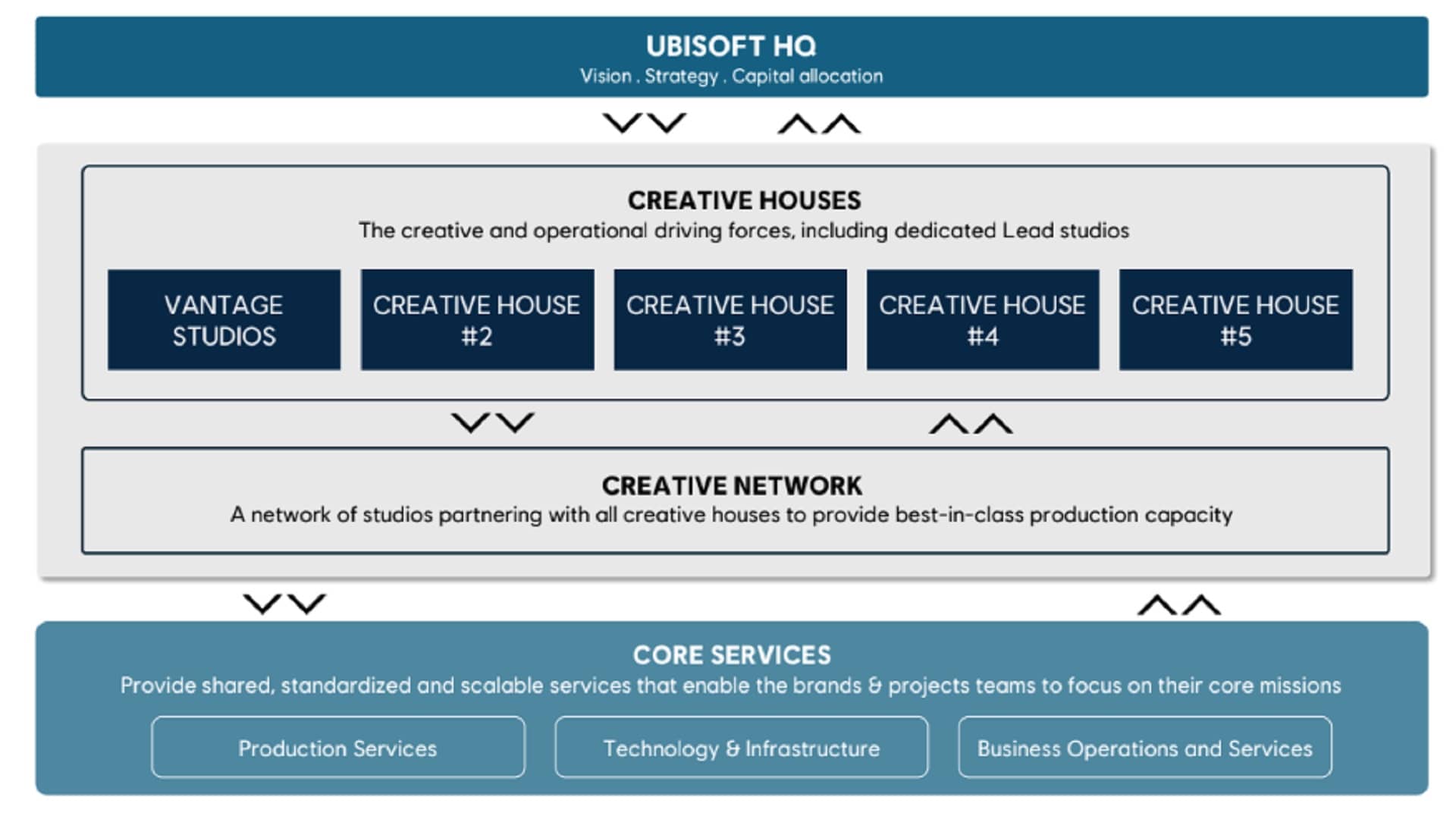 - Die Creative Houses sind nach Genres aufgebaut und werden von spezialisierten Führungsteams geleitet.